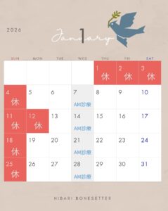 1/5(月)より通常診療です。お電話も1/5からの対応になります。 今年もよろしくお願いいたします。